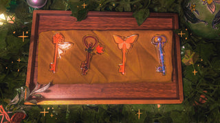 Key are collectable acrylic pins designed by The Artist as a commemoration for your participation in a 'Guest Preview' (see the above glossary!) They act as a figurative way for you to 'access the room after it closes' (otherwise known as wearing/using the items you purchased during the drop!), and can either be received for free by purchasing an item from the collection during a Preorder, or will be available for purchase on their own during the Preorder in case you're unable to purchase an item from the Room (collection) at this time.